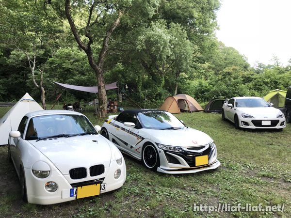 愛車の横に1人1つのテントが並びます。